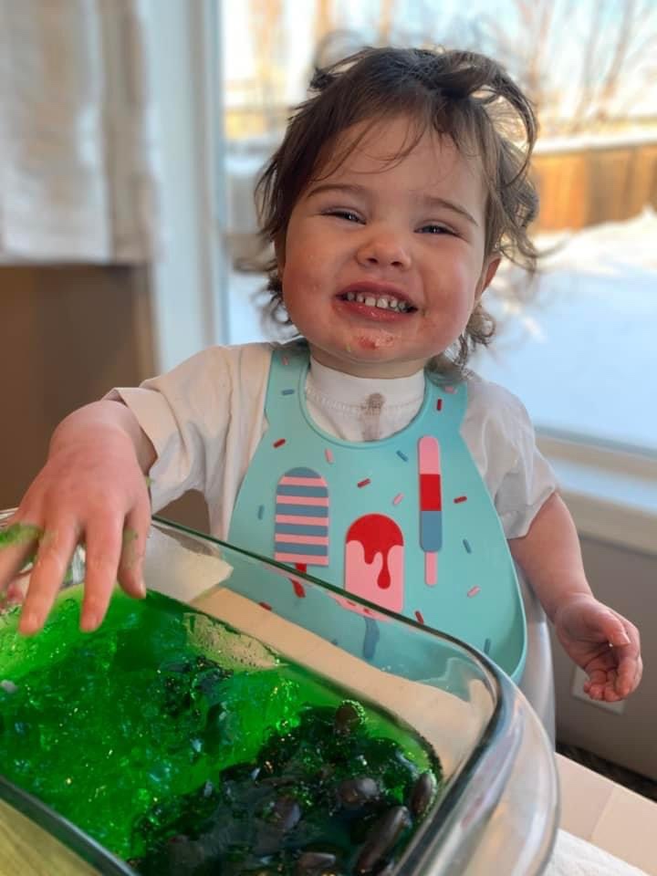 Isn’t L. So cute here!!! She had so much fun taking apart and eating the jell-O!